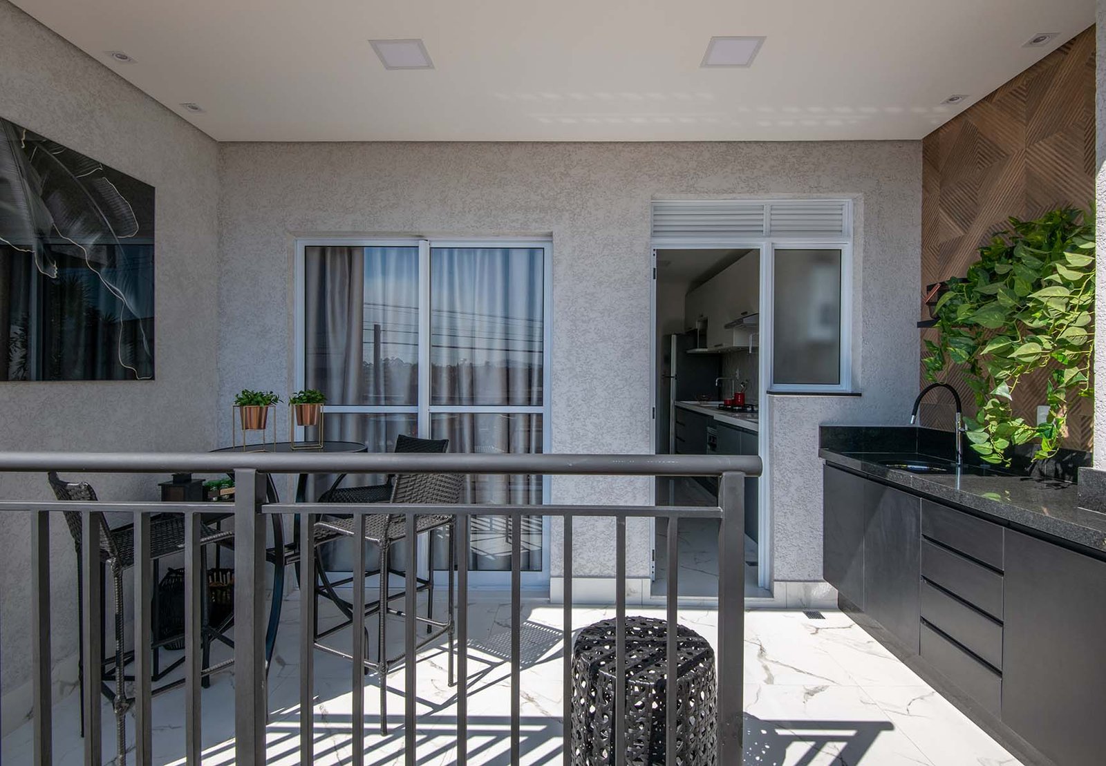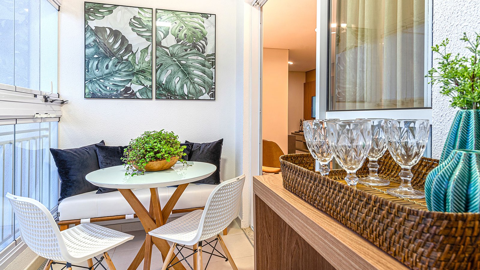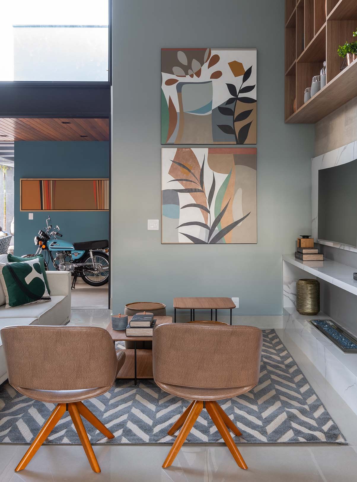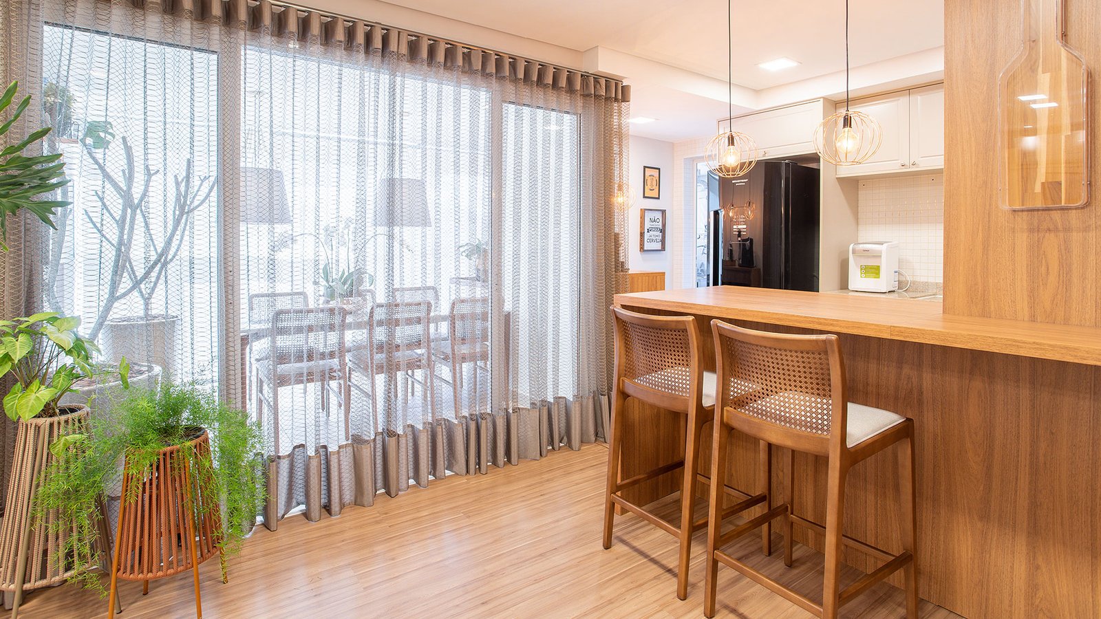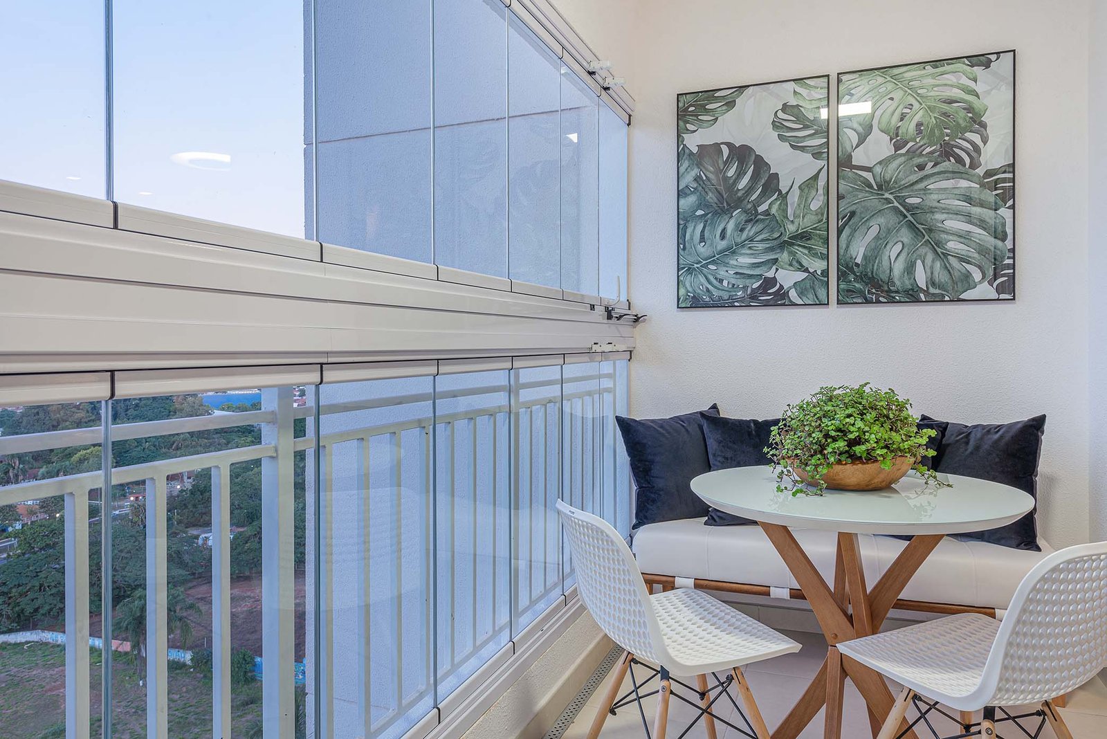 Sala de apartamento com estofados e decorações escolhidos pela designer de interiores Thaísa Soares.