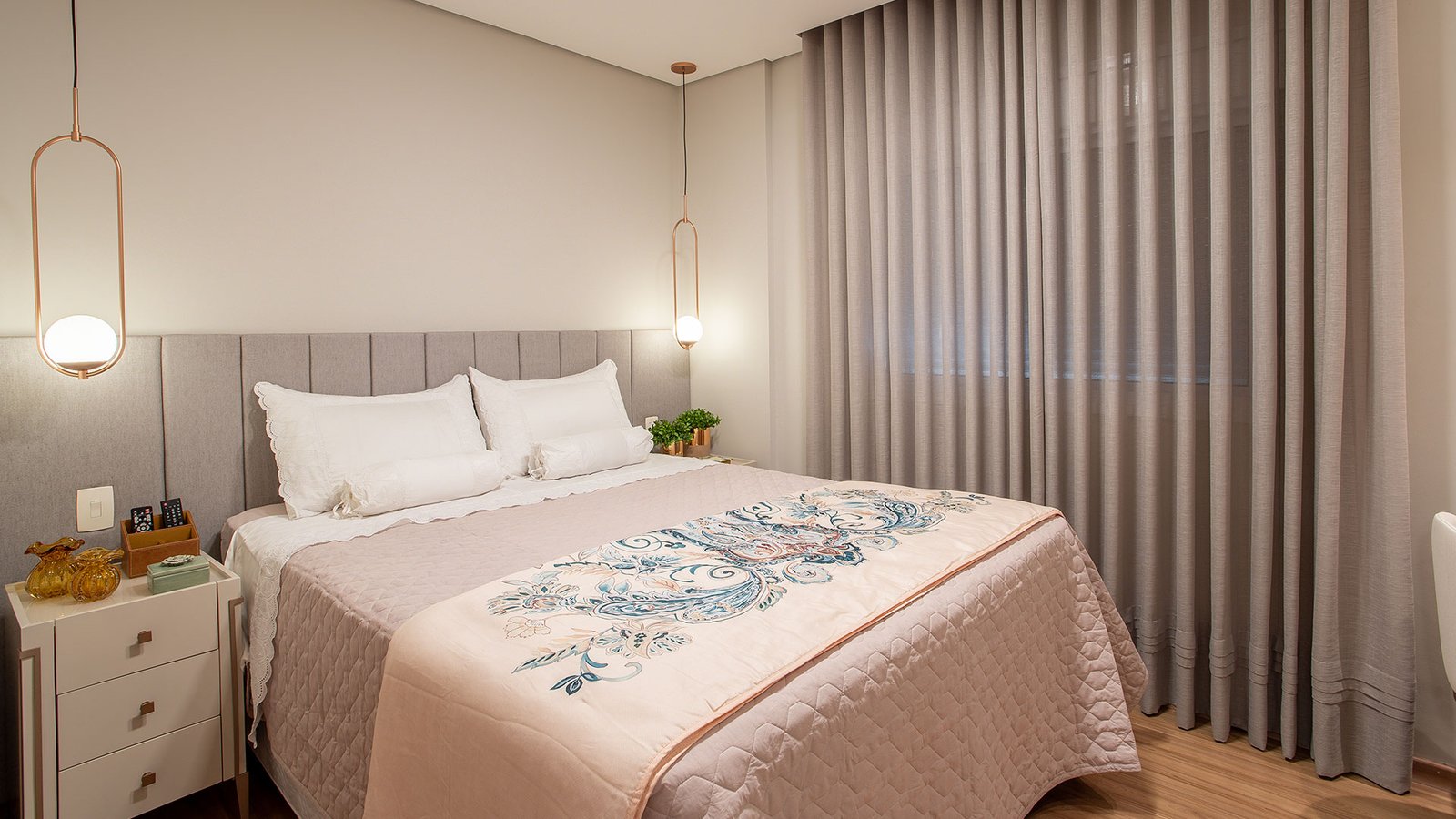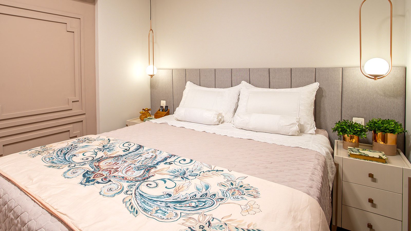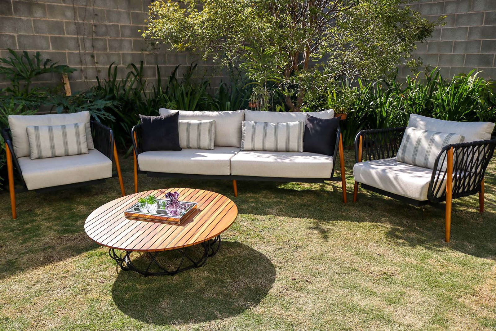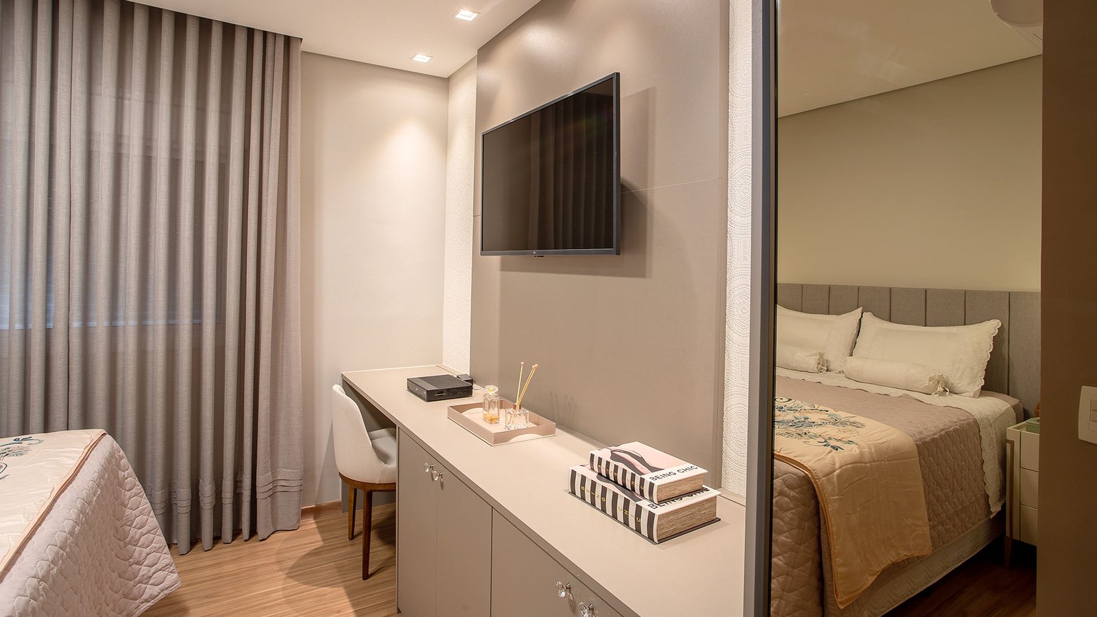Sala de apartamento com estofados e decorações escolhidos pela designer de interiores Thaísa Soares.