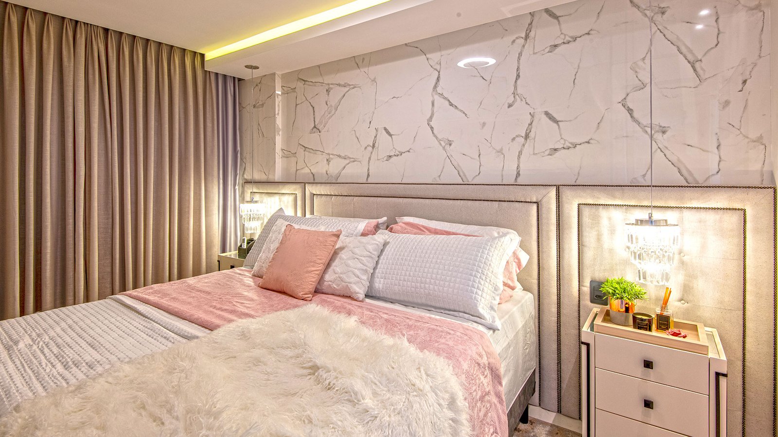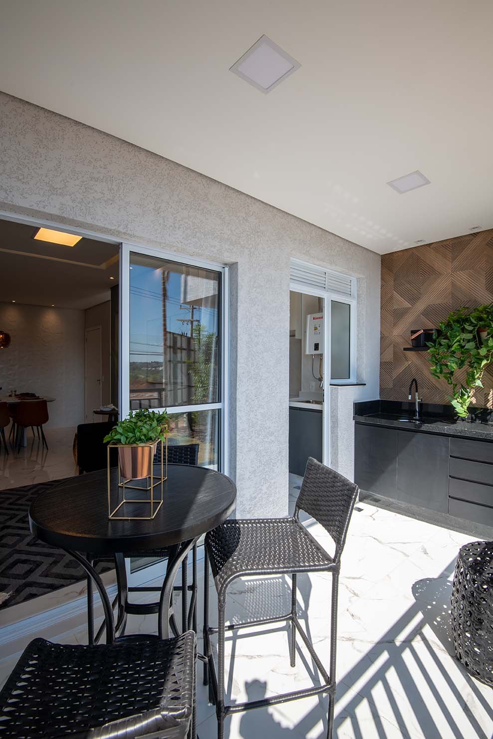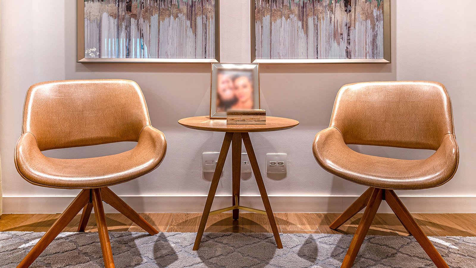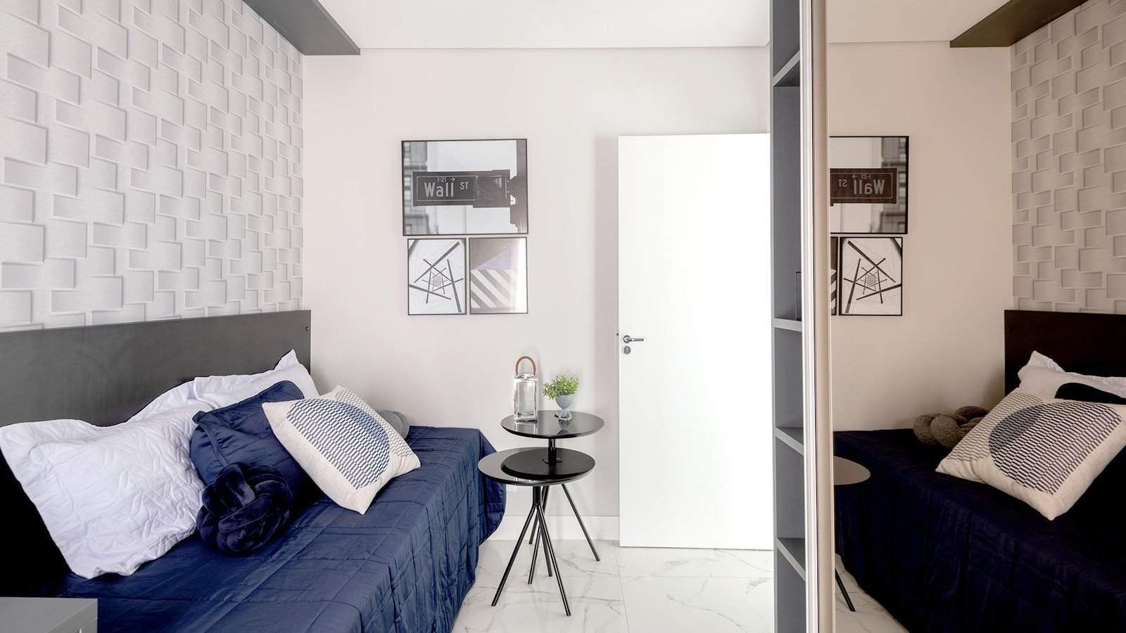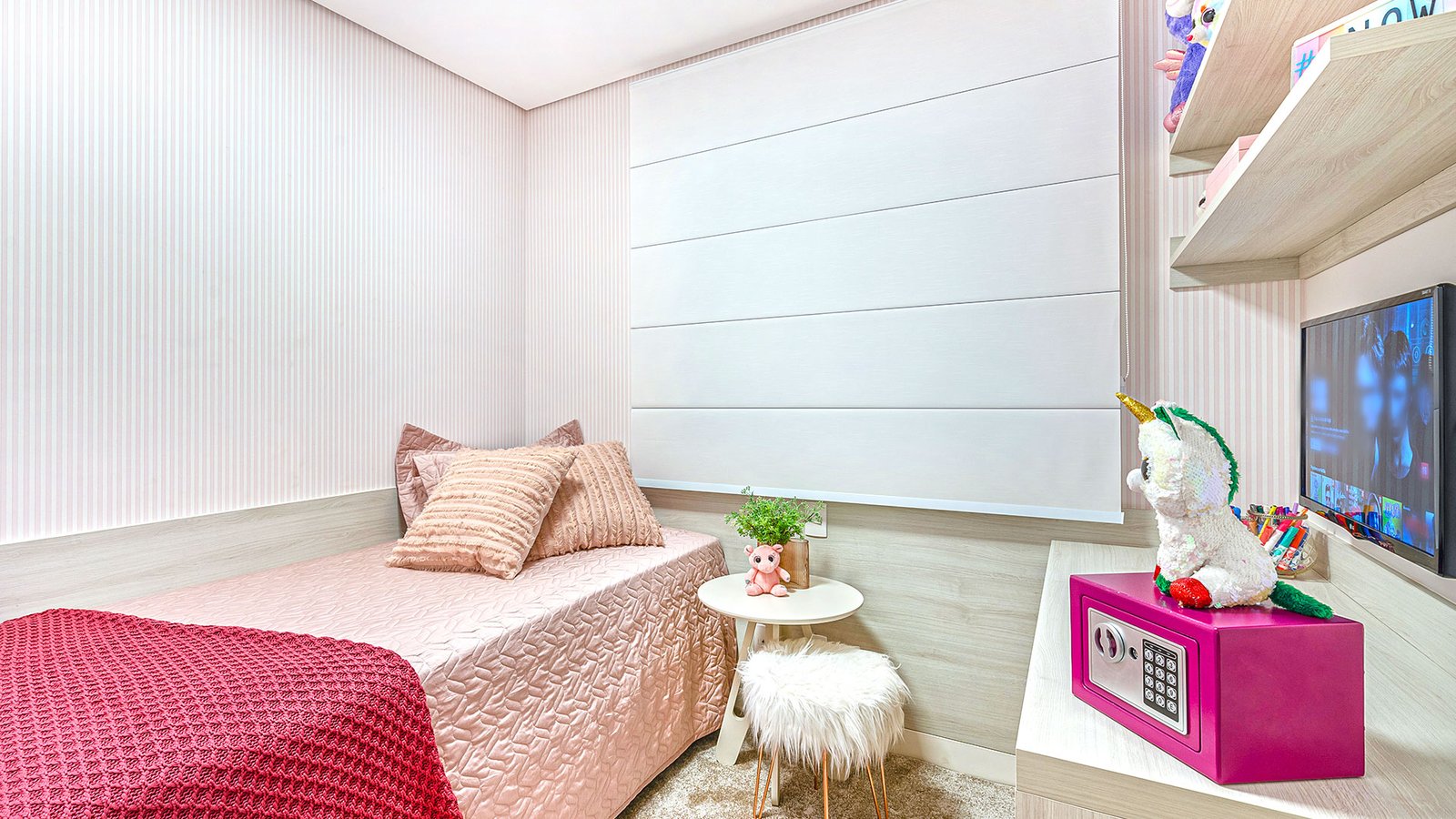 Sala de apartamento com estofados e decorações escolhidos pela designer de interiores Thaísa Soares.